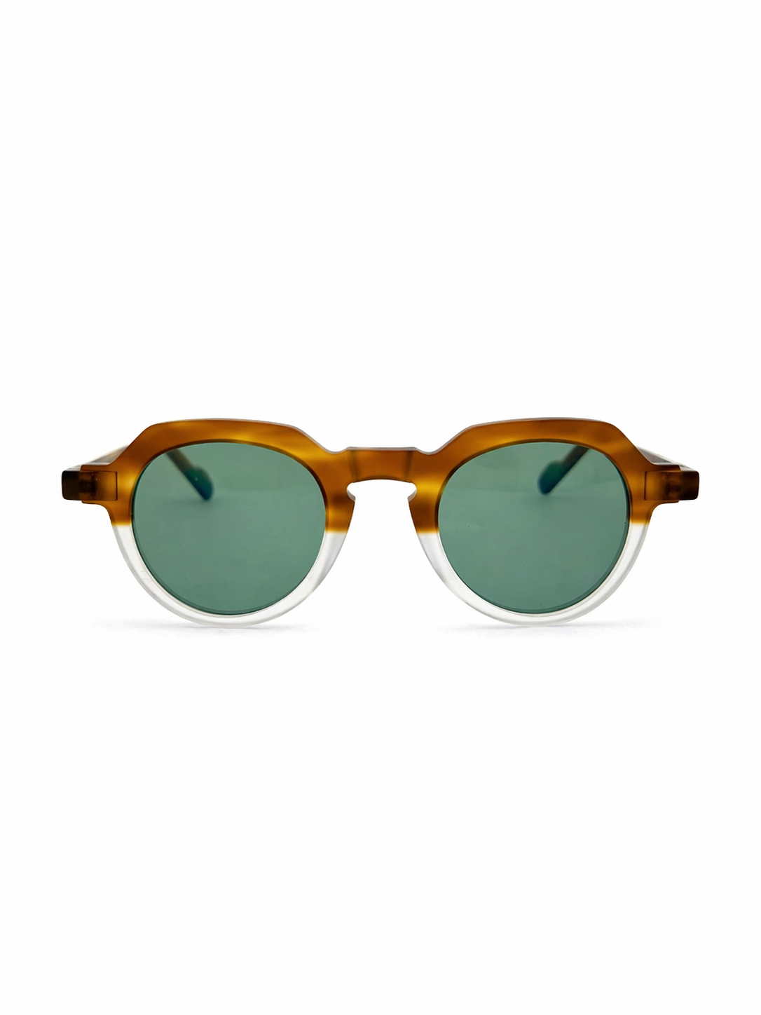 Les verres aux nuances vertes apportent fraîcheur et confort visuel, évoquant la sérénité de la nature. La forme ronde, équilibrée et intemporelle, s’inscrit dans une esthétique minimaliste où chaque détail est pensé pour sublimer sans en faire trop.
