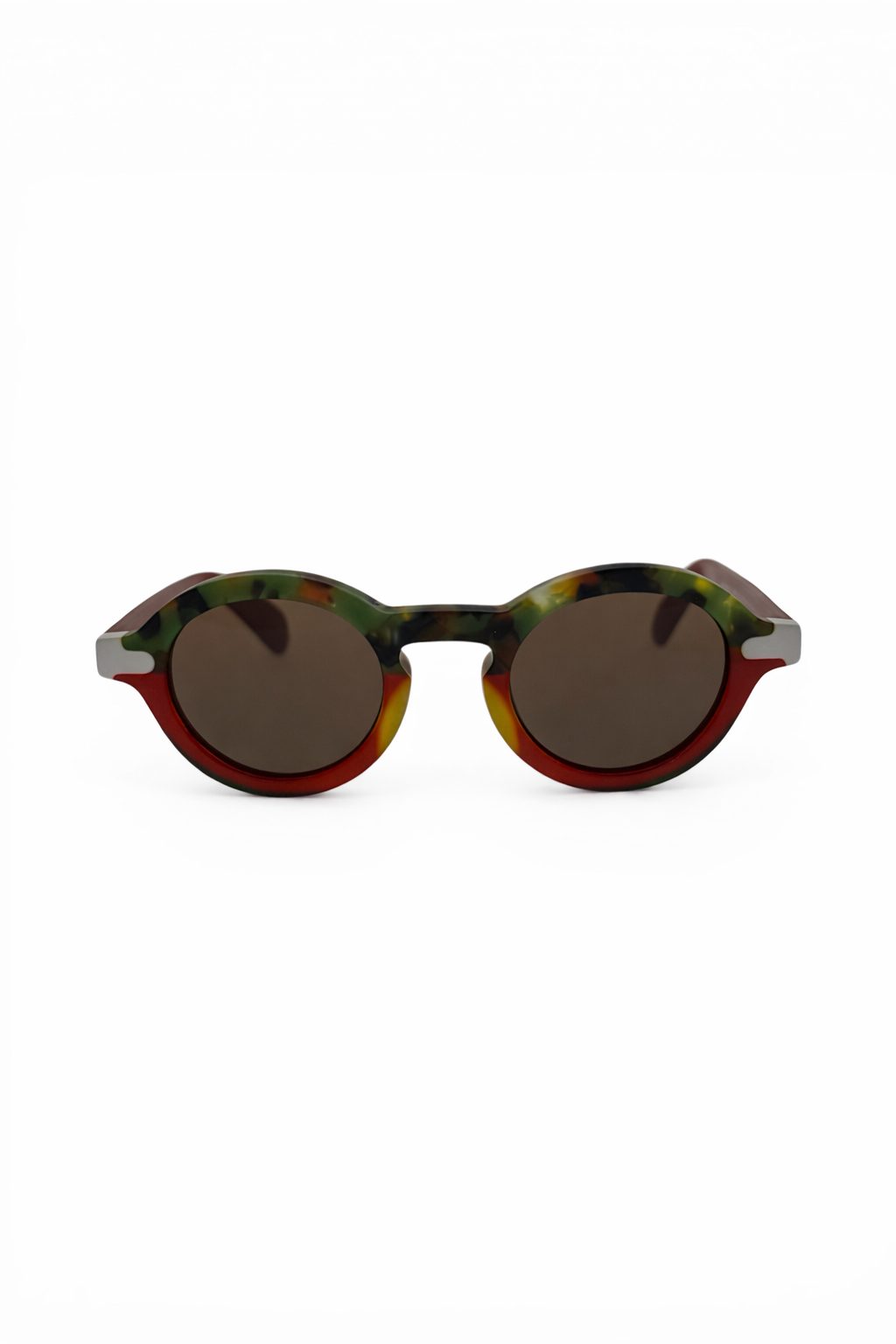 Inspirées par les nuances naturelles et les paysages ensoleillés, ces lunettes de soleil jouent avec une palette de couleurs chaleureuses et organiques. La monture mêle subtilement des tons verts profonds, des reflets ambrés et des touches rouge intense, évoquant un équilibre entre nature et modernité.