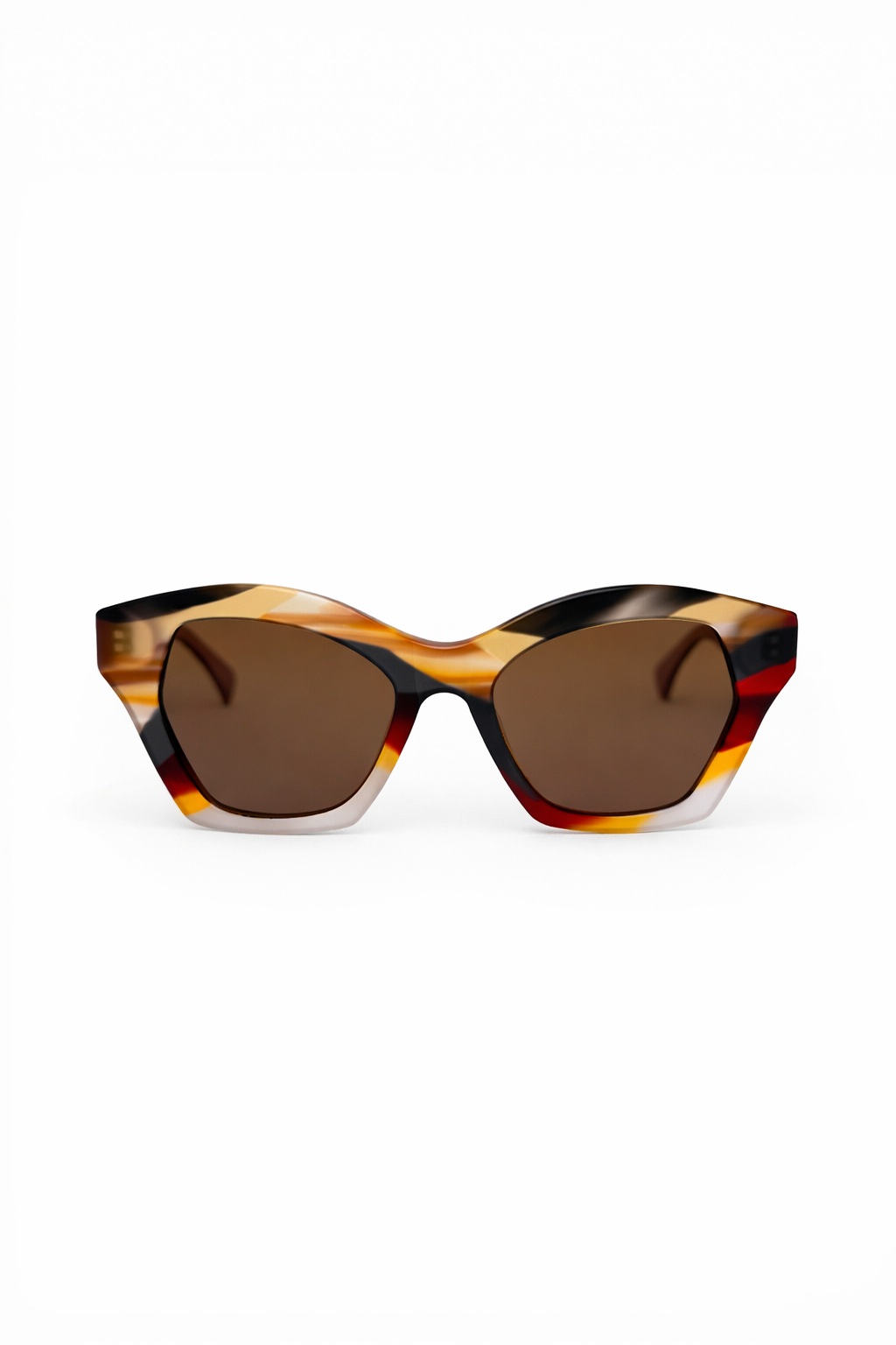 Laissez-vous séduire par ces lunettes de soleil au design élégant et contemporain. Leur monture aux nuances écaille revisitées, mêlant des tons chauds de miel, de brun et de rouge profond, apporte une touche sophistiquée et lumineuse à votre style.