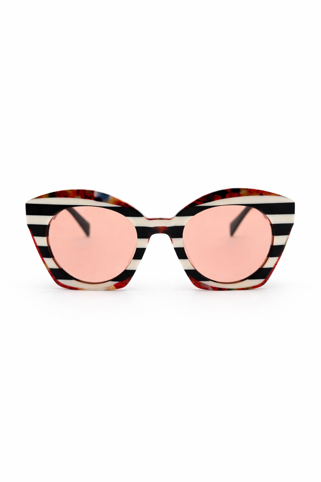 Affirmez votre style avec ces lunettes de soleil au design audacieux et résolument moderne. Leur monture graphique, mêlant rayures contrastées noir et blanc et nuances écaille, apporte une touche unique et sophistiquée.